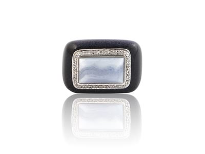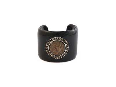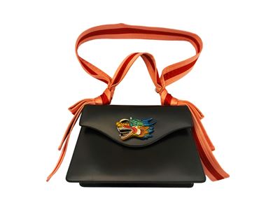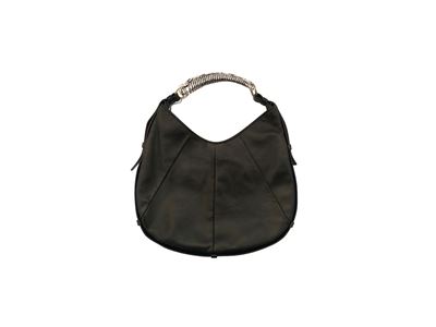 Salvatore Ferragamo, Portachiavi in pelle nera e laminata argento