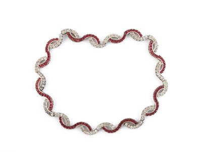 Collana in argento Sterling con pietre sintetiche bianche e rosse