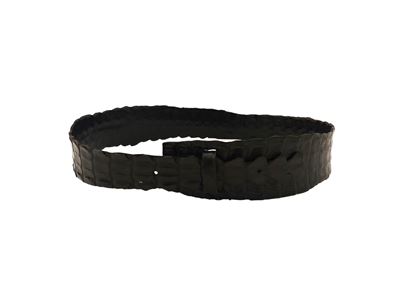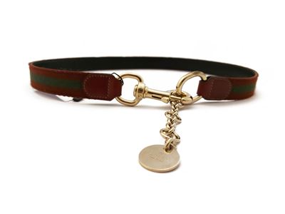 Gucci, Cintura in pelle nera e tela bordeaux e verde
