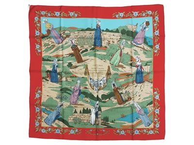 Hermès, Foulard in seta "Costumes de departements de la Seine inférieur du Calvados...