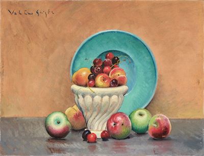 Valentino Ghiglia, Vaso con fiori, olio su cartone
