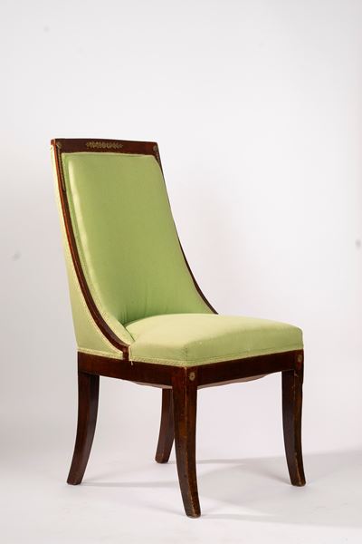 Poltrona Impero, imbottita con decorazioni floreali in bronzo