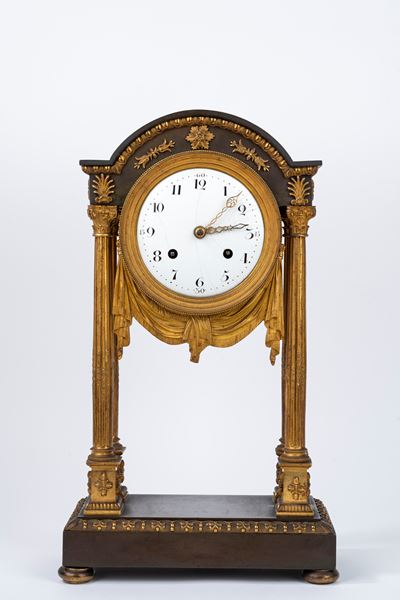 Pendola Impero, bronzo dorato con colonne, Francia XIX secolo