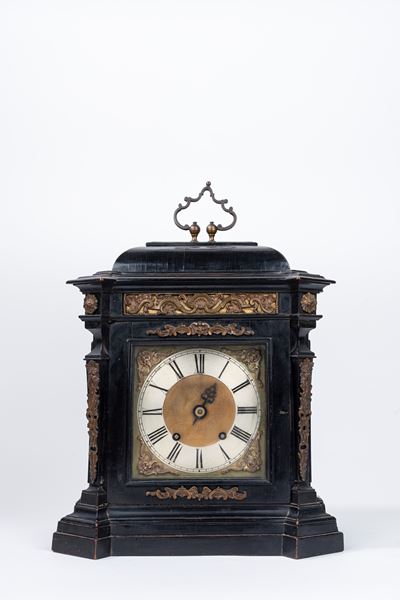 Pendola romana, legno ebanizzato con applicazioni in bronzo dorato e metallo argentato