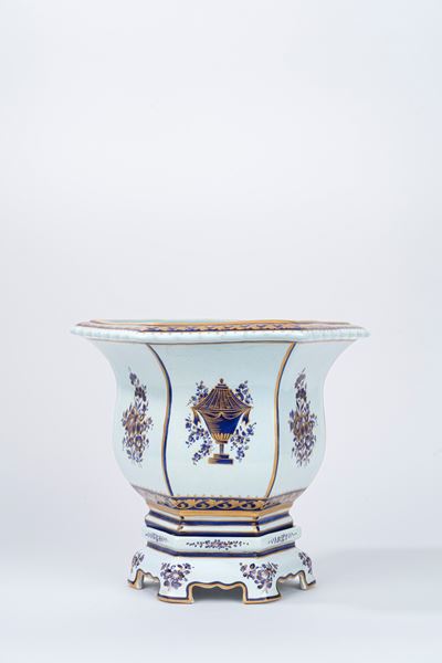Vaso esagonale in porcellana decorata, inizi secolo XX