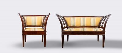 Divano a due posti e poltrona, legno intagliato, XIX secolo