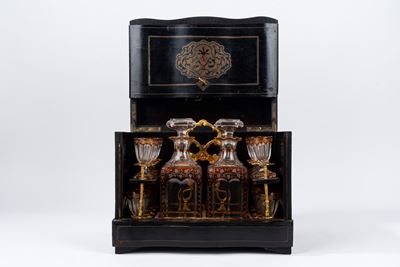 Tantalo da carrozza con servizio in cristallo di Boemia, XIX secolo