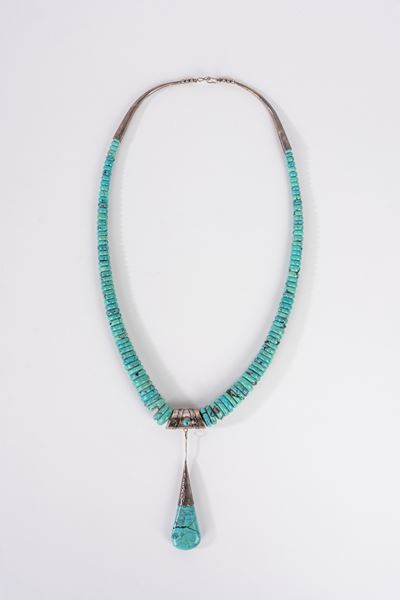 Collana Nativa Americana, lunghezza totale cm 67, con turchesi