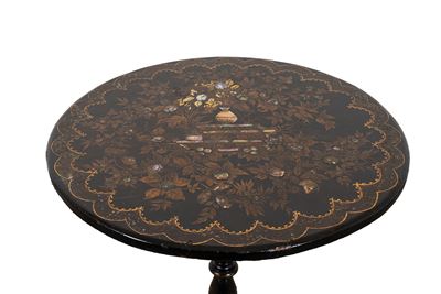 Tavolino tondo, decorato a motivi floreali con intarsi in madreperla, secolo XIX