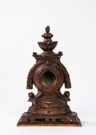 Porta orologio in legno intagliato e dorato, fine XVIII - inizi XIX secolo