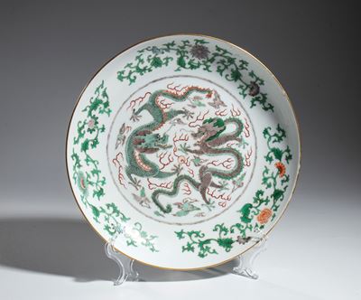 Piatto a doppio drago, ceramica cinese, Diam. 25 cm