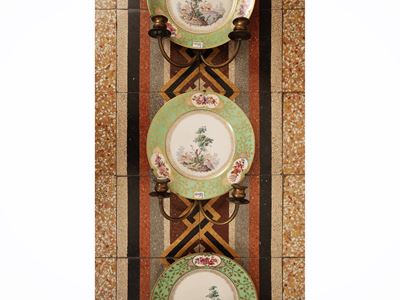 Applique in metallo dorato e porcellana, serie di tre pezzi, XIX/XX secolo