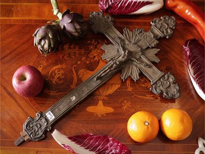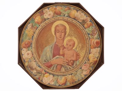 Garibaldo Cepparelli, Madonna con Bambino entro una ghirlanda di fiori e frutta, pannello circola...