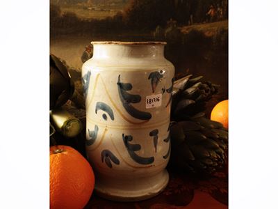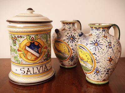 Montelupo, Coppia di albarelli da farmacia in maiolica, XVI/XVII secolo
