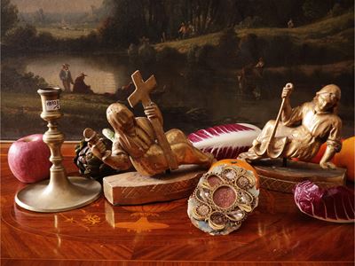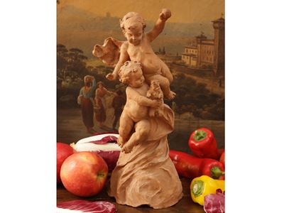 Gruppo in porcellana policroma, 'Il gioco della mosca cieca', XIX/XX secolo