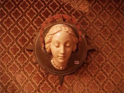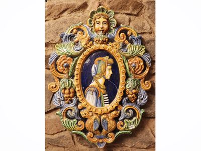 Medaglione in maiolica policroma di Caltagirone, ovali con cornice decorata