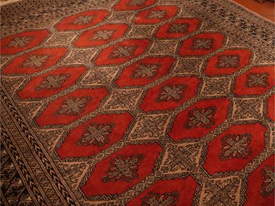 Tappeto persiano Bukara, cm 250x158, con medaglioni nei toni del rosso