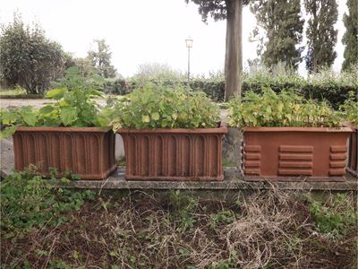 Cinque vasi a cassetta in terracotta, h cm 29x60x32 circa