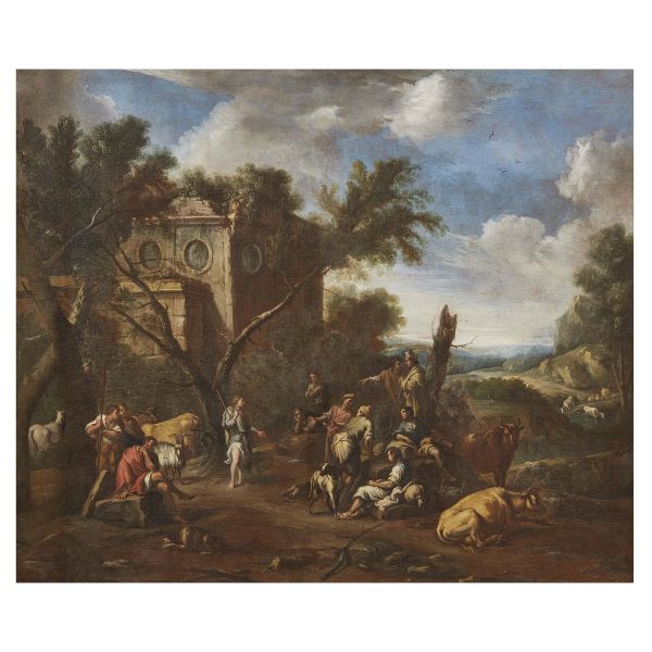 Scuola Bolognese, Paesaggio con Giuseppe e i suoi Fratelli, olio su tela