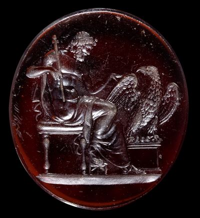 A Roman Carnelian Intaglio. Seated Zeus.
