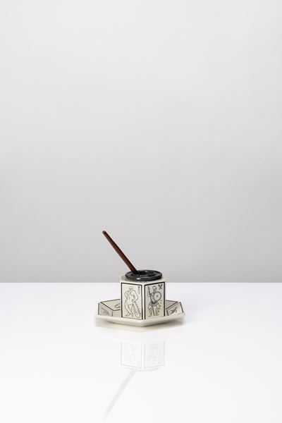 Gio Ponti, Calamaio con piattino in terraglia decorata, circa 1935