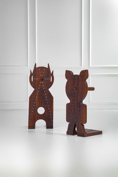 Giovanni Borgarello, Due tavolini scultorei zoomorfi in legno massello, circa 1970