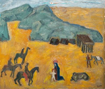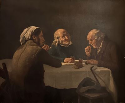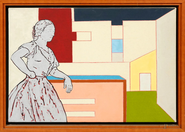 Urbano domestico in riposo, olio su tela, cm 50x70, titolato e firmato al retro