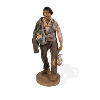 Manifattura Italiana, Scultura in terracotta dipinta raffigurante un mendicante