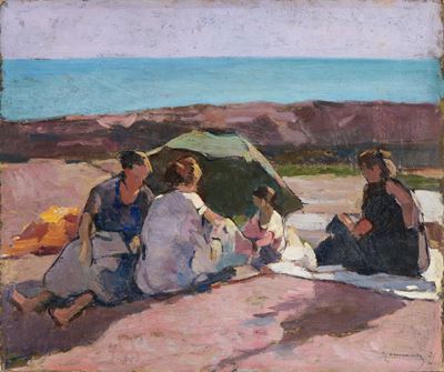 Ludovico Tommasi, L'ombrellone verde, olio su cartone