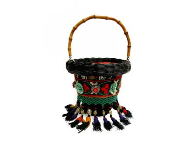 Secchiello a cestino in bambù nero, h 36 cm, pezzo unico decorato