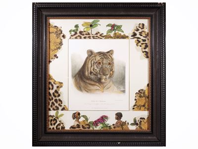 Roberta Balsamo, Grande specchiera decorativa animalier con tigre e fogliame dipinto