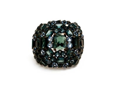 Bracciale con strass blu, metallo brunito, diametro 6,5 cm
