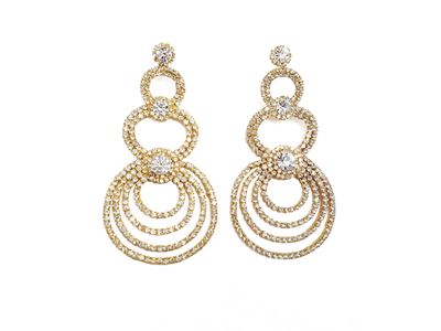 Orecchini chandelier, metallo dorato e strass incolore, lunghezza cm 11