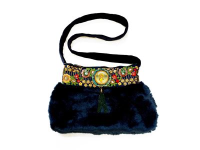 Borsa gioiello in pelliccia ecologica blu, realizzazione artigianale