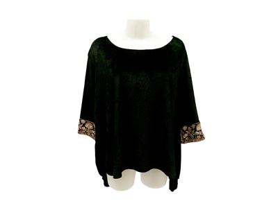 Blusa in velluto nero con maniche a 3/4 e decorazione floreale in paillettes