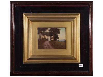 Autore non identificato, Scorcio di campagna, olio su tela