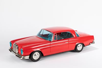 Mercedes Benz, Modellino 300 SE in lamiera, cavalcabile con scatola