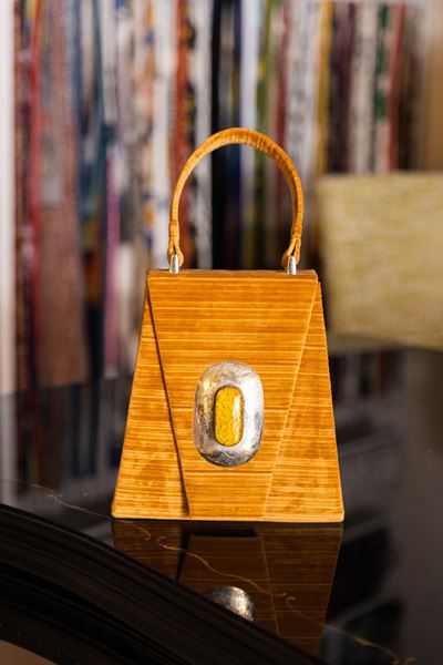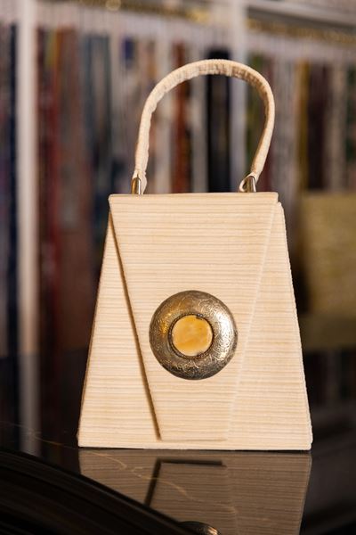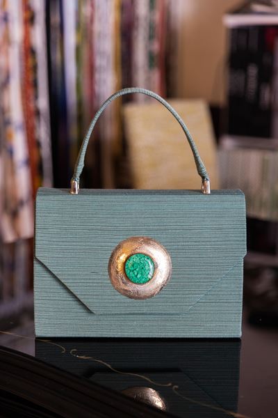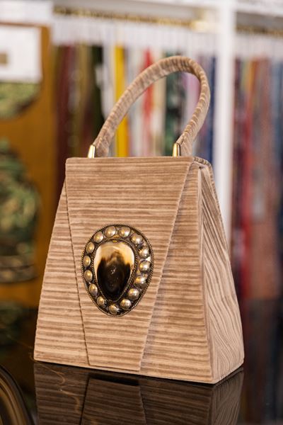 Borsa Lavi Bags ealizzata a mano con velluto imprimé con pietra in osso marocchina