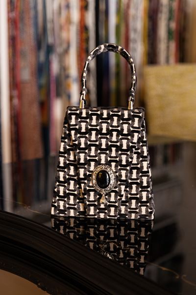 Borsa Lavi Bags realizzata a mano in tessuto velluto operato con gioiello in ottone cromato e pie...