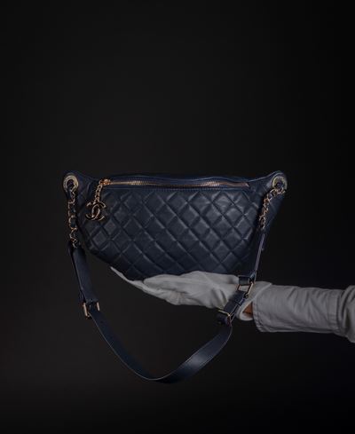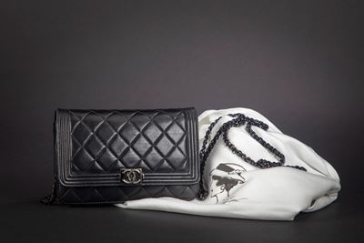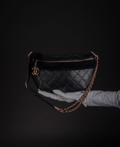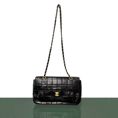 Borsa Chanel modello chocolate bar in testa di moro con metalleria dorata