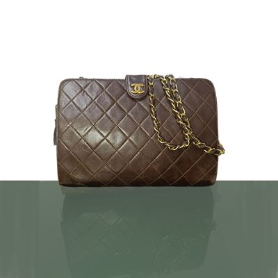 Borsa Chanel a spalla Matelassè con catena dorata in pelle marrone