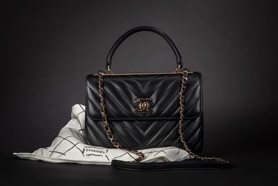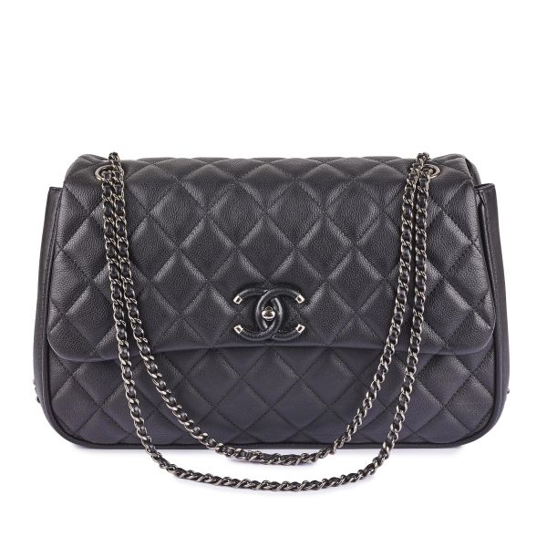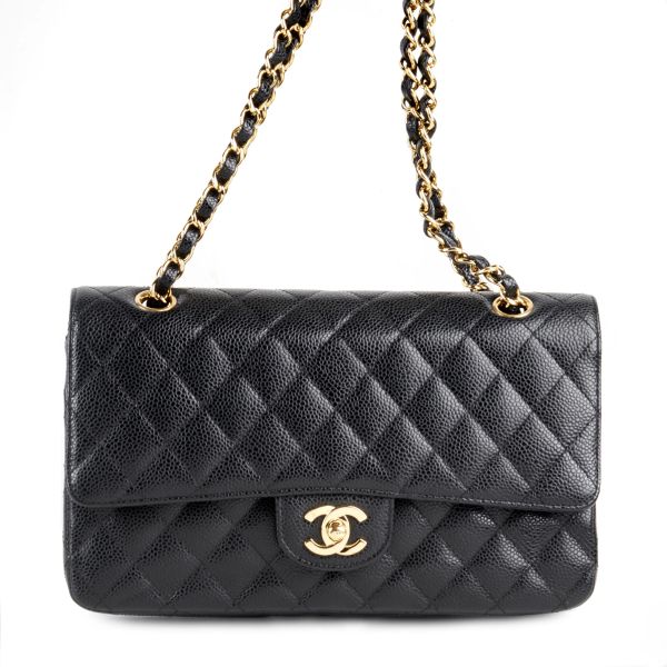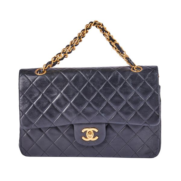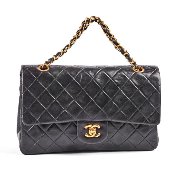 Borsa Chanel modello Timeless in pelle nera con catena e metalleria dorata