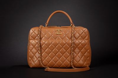 Borsa Chanel in pelle marrone modello Camera bag con metalleria e catena dorata