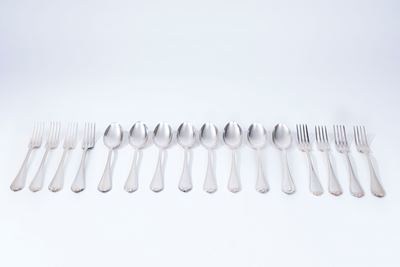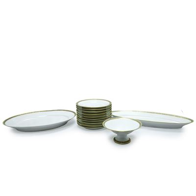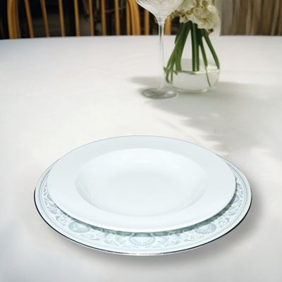Tovaglia e ventiquattro tovaglioli in lino bianco