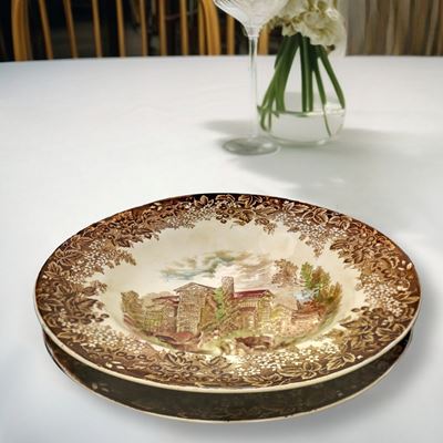 Tovaglia rotonda e sedici tovaglioli in lino naturale