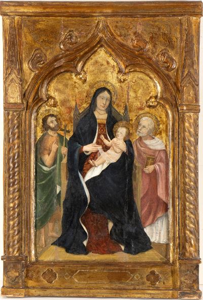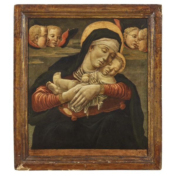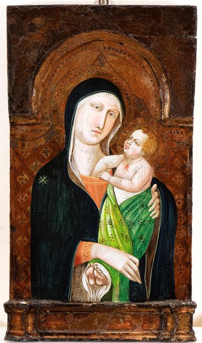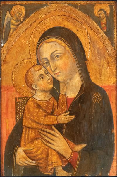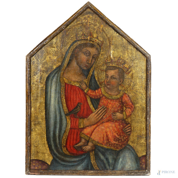 Alla maniera di Jacopo di Michele (notizie 1368-1395), Madonna con il Bambino, olio su tela appli...