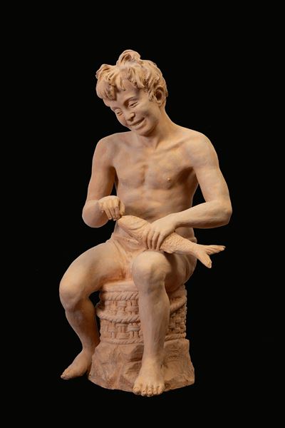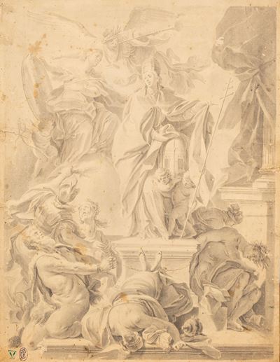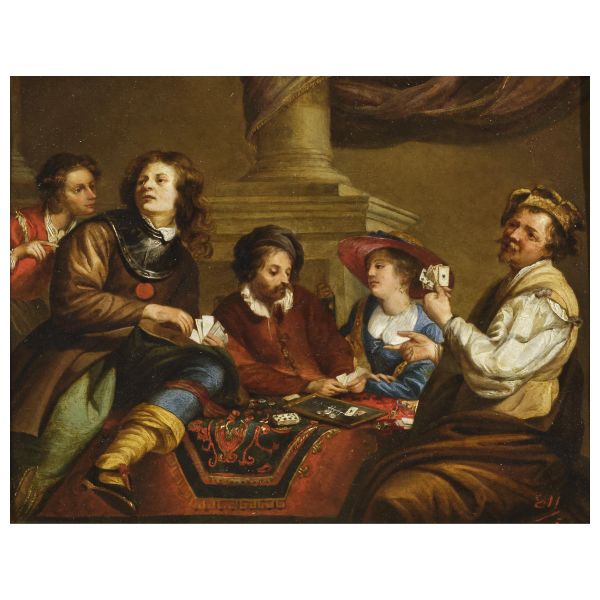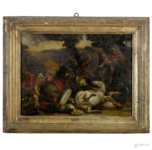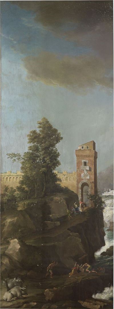 Pittore tedesco attivo in Italia nel XVIII secolo, Il naufragio, tecnica mista su ardesia, cm 56x...