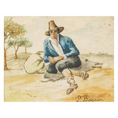 Scuola italiana del XVIII secolo, Paesaggio con figura; Paesaggio con torrente e figura, cm 23,5x...