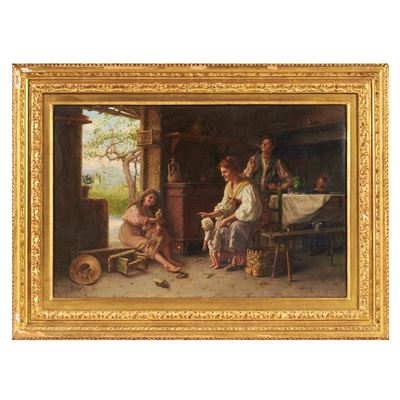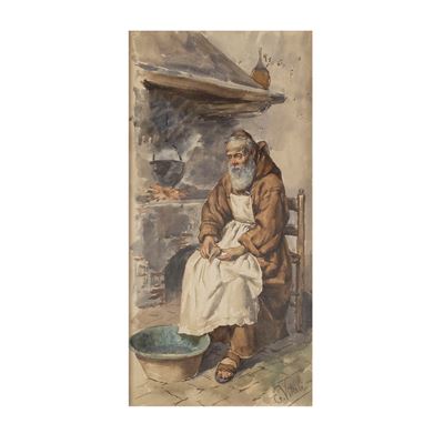 Neli Marchese (XIX-XX secolo), Al tramonto, olio su tela, cm 80,5x100, firmato in basso a sinistr...