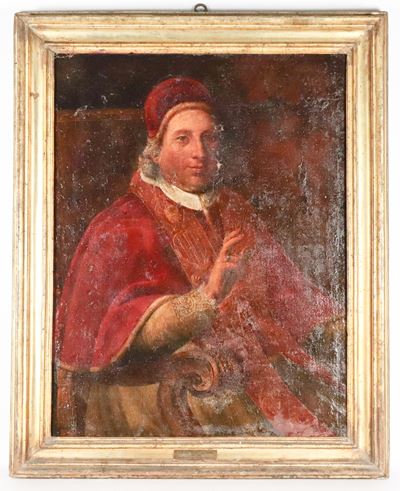 "Ritratto di Papa Clemente XIII", dipinto ad olio su tela in antica cornice in legno dorato. La t...